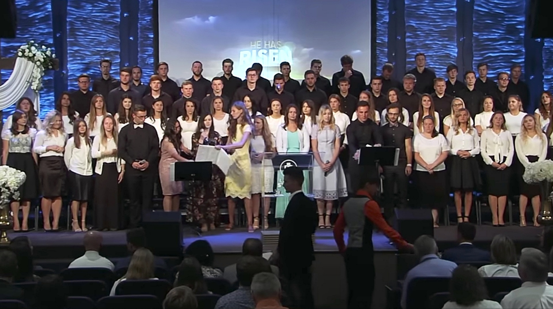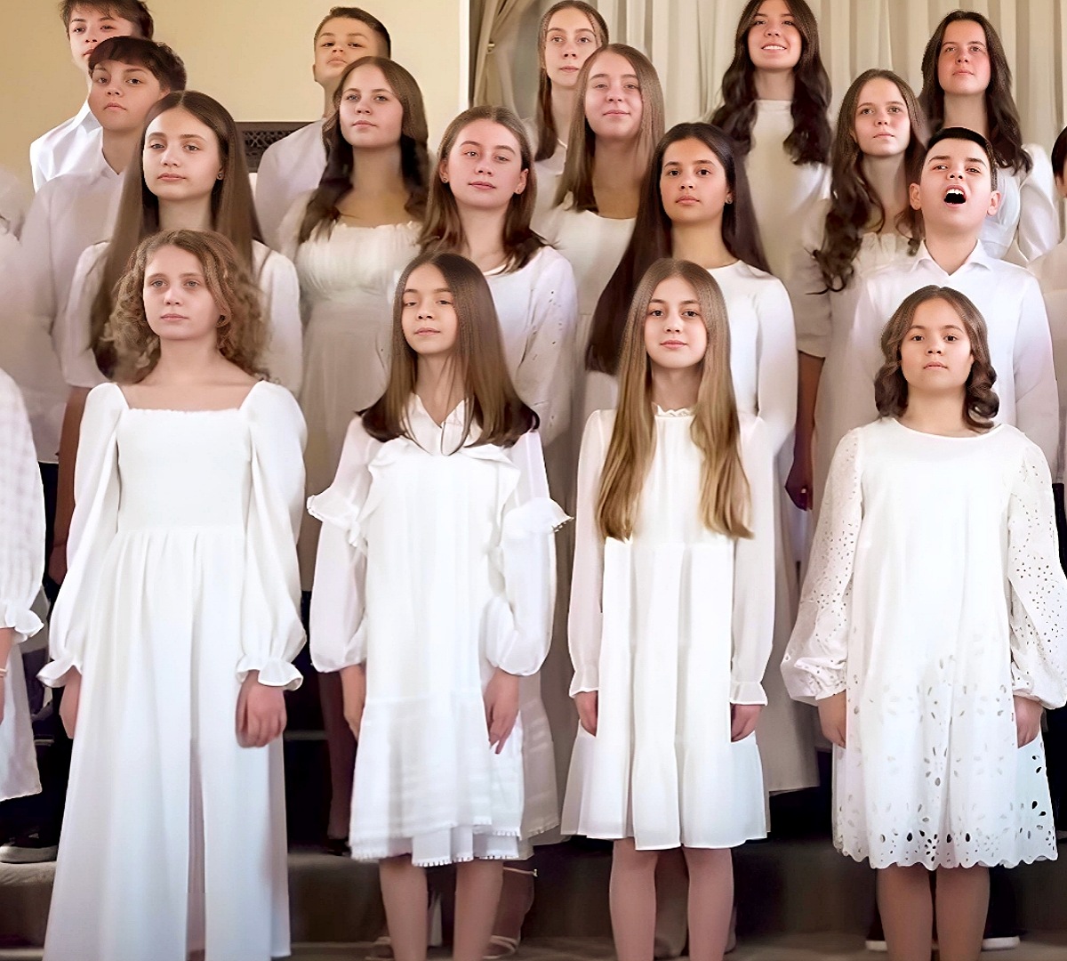 На скрине: девушки молодёжного хора христианской церкви, одетые в постельное бельё