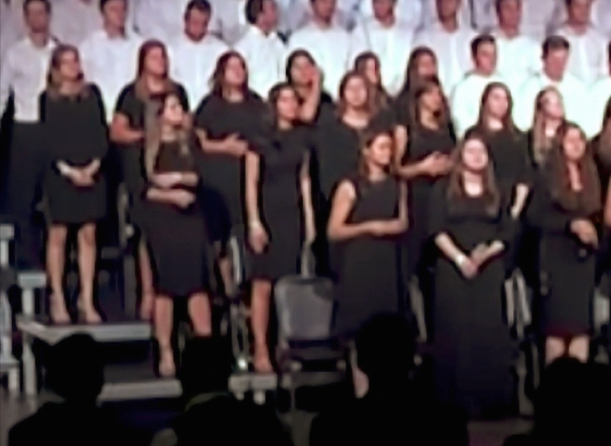 На скрине: хор христианской церкви одетый по принципу "маленького чёрного платья" от Шанель Коко, платья, впервые в истории обрезанного ею по колено