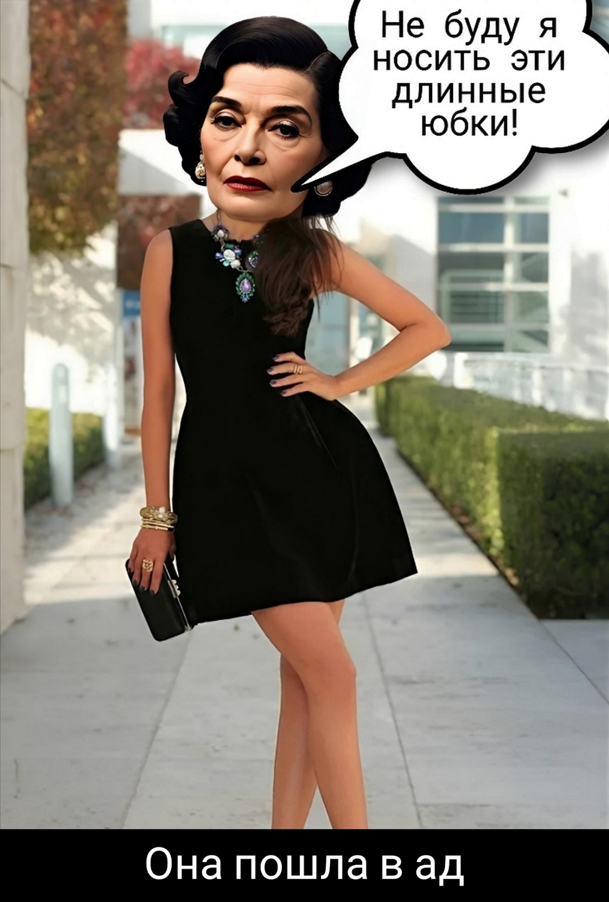 На картинке фотомонтаж с Коко Шанель: "Не буду я носить эти длинные юбки!". Подпись: "Она пошла в ад"
