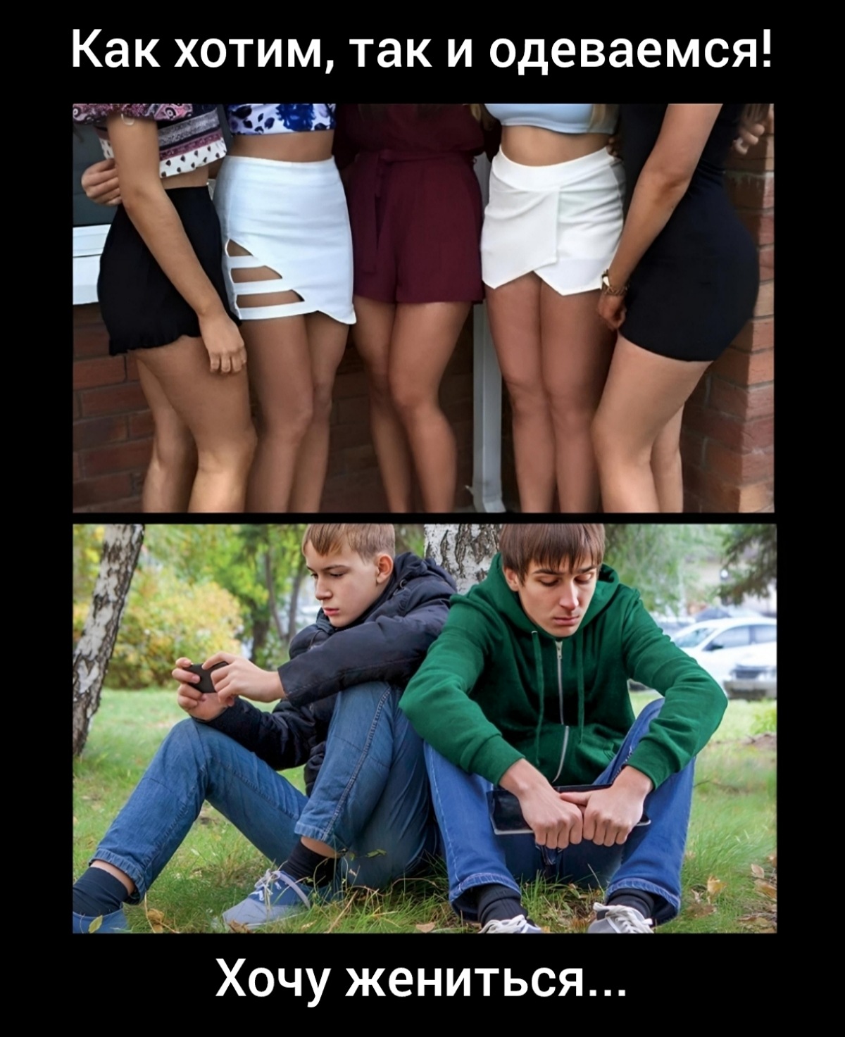 На картинке подпись: "Как хотим, так и одеваемся!"; "Хочу жениться.."