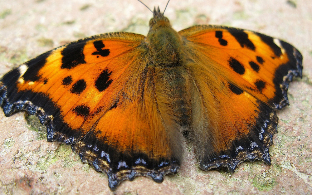 бабочка крапивница на земле