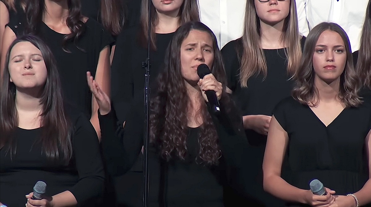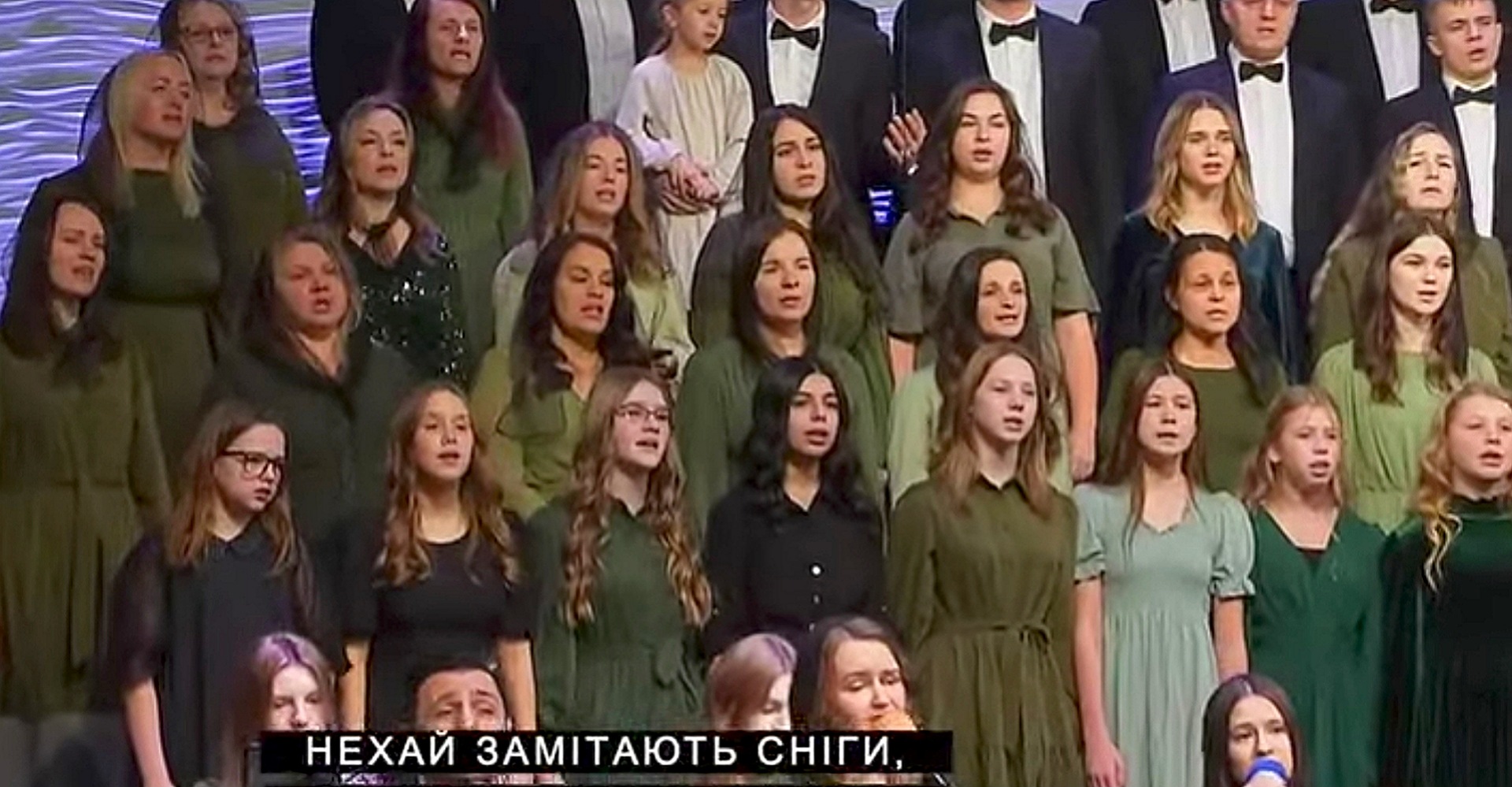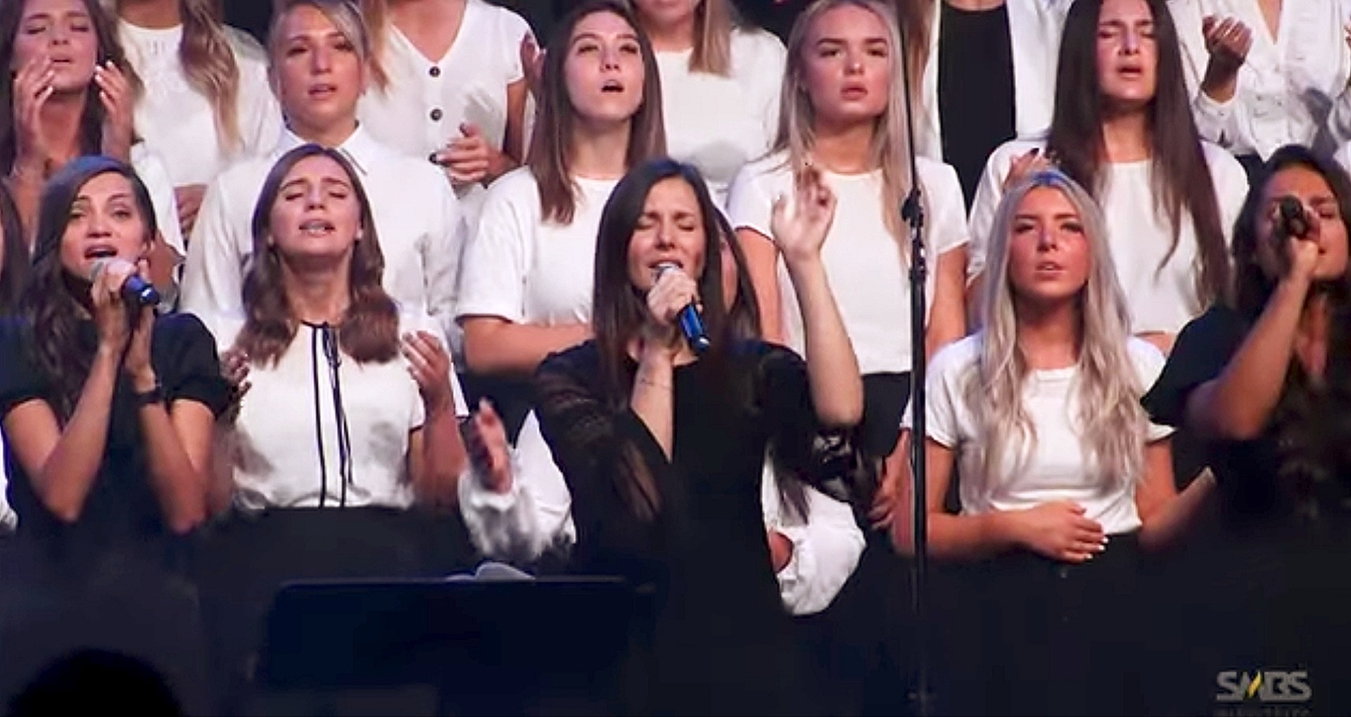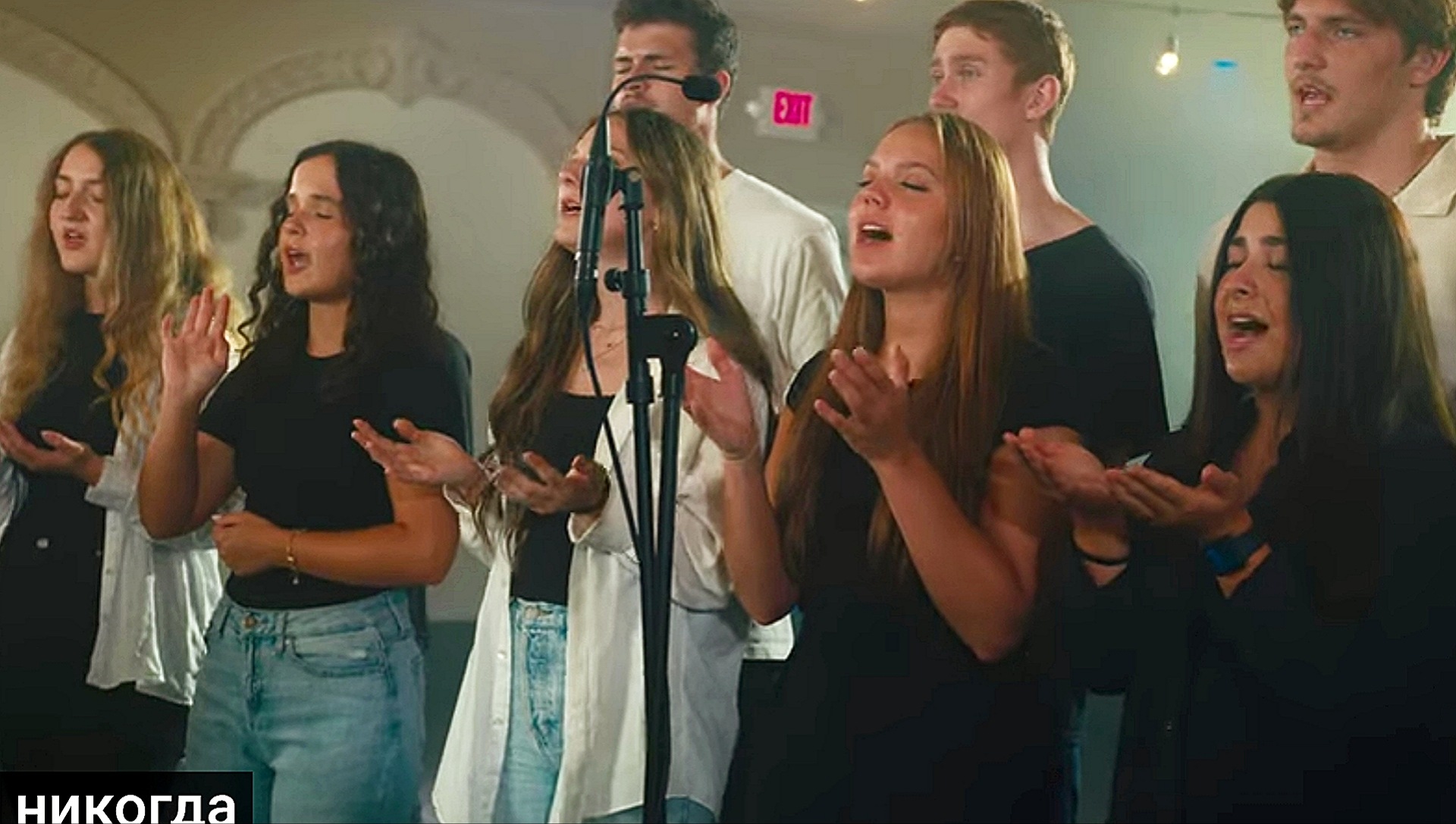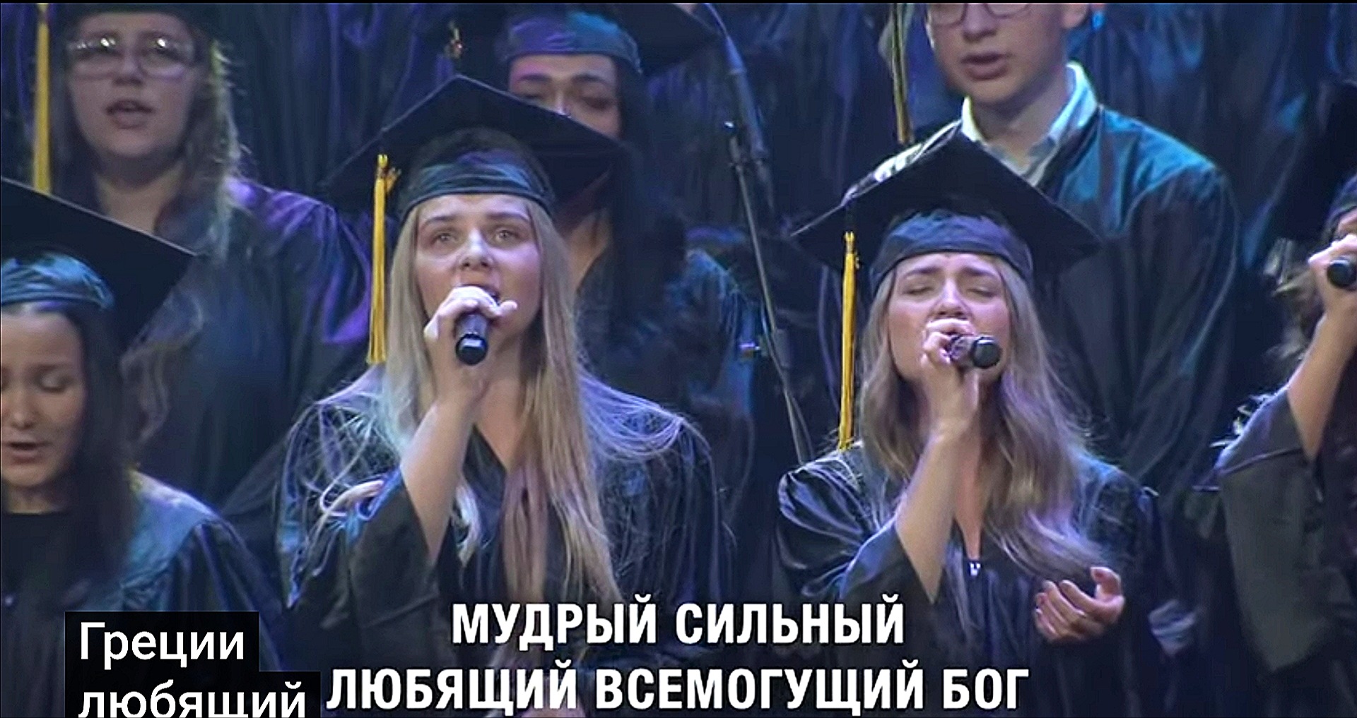 На скрине: девушки молодёжного хора христианской церкви, одетые в постельное бельё