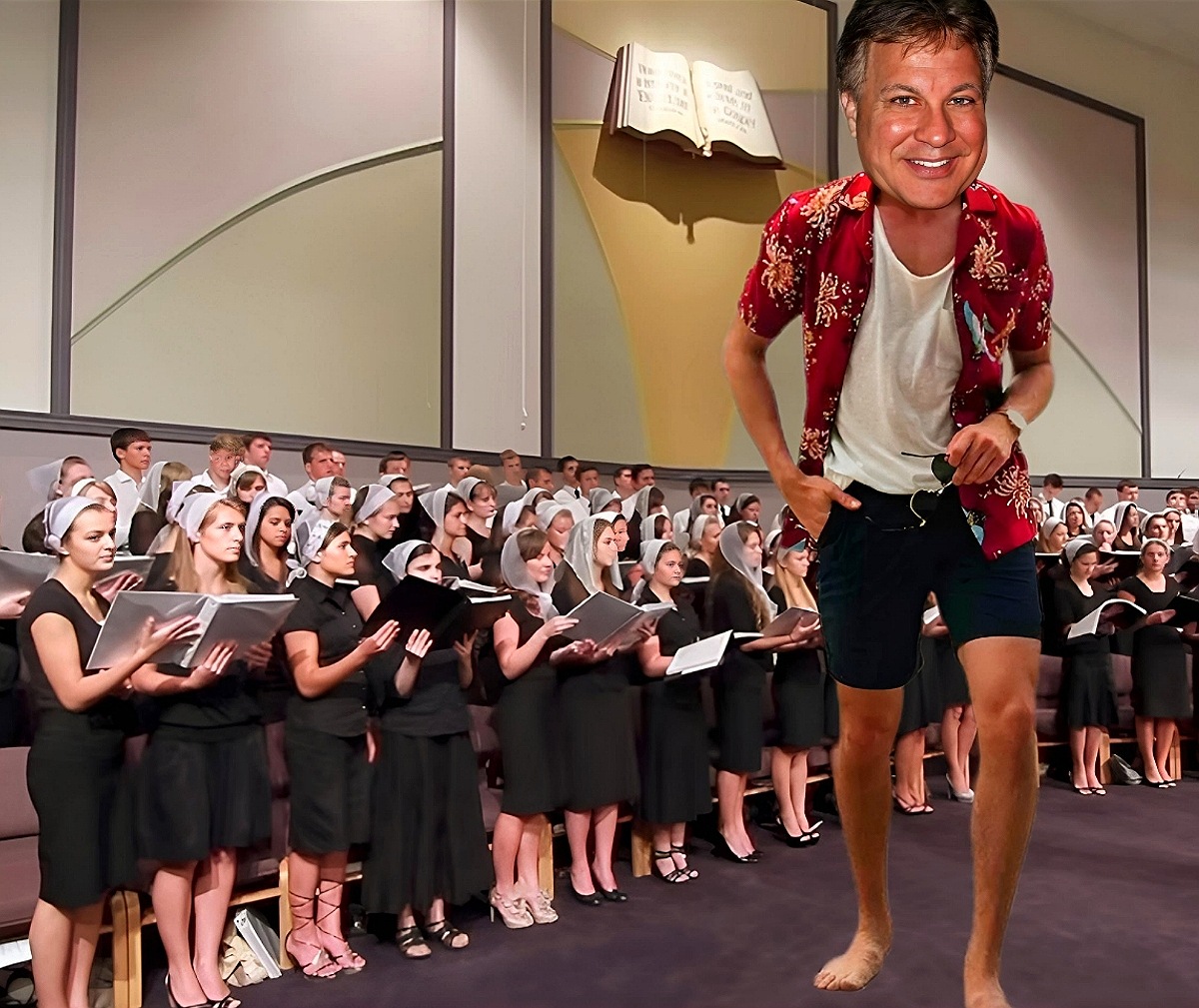 Давайте рассмотрим эту ситуацию на саркастическом примере: если короткие платья на сёстрах — церковная норма, что мешает братьям надеть шорты и майки? Такие хористы идеально вписались бы в общую стилистику выступления. Почему полунаги только христианки? Пусть проповедники убирают свои пиджаки и выходят на публику в шортах или домашних халатах, показывая всем свои красивые коленки.