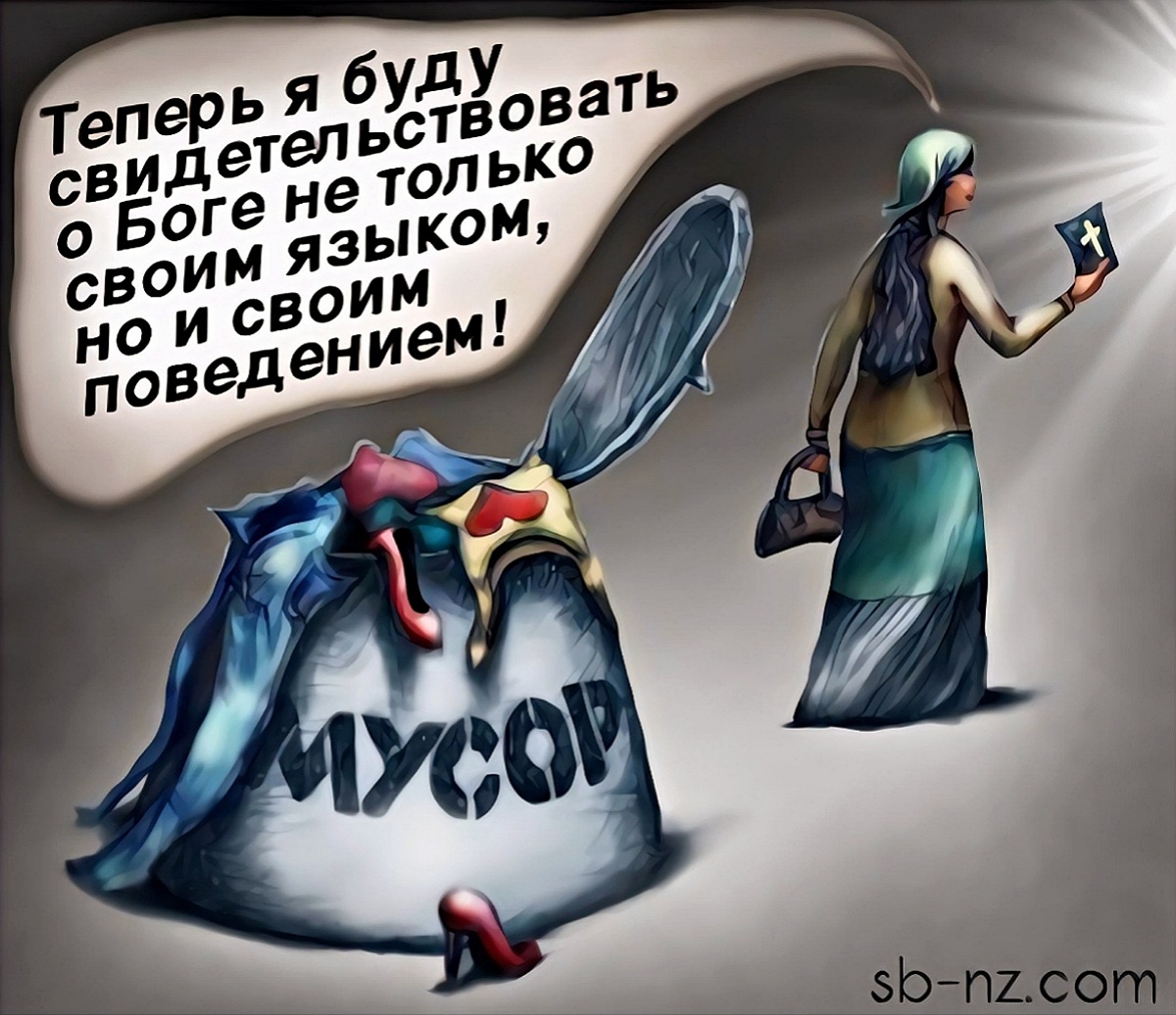 На картинке: "Теперь я буду свидетельствовать о Боге не только своим языком, но и своим поведением!"