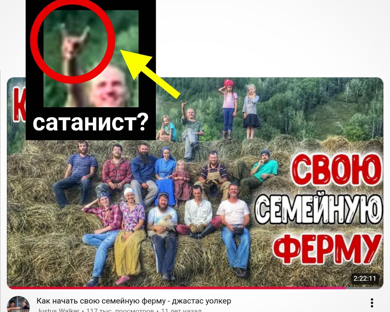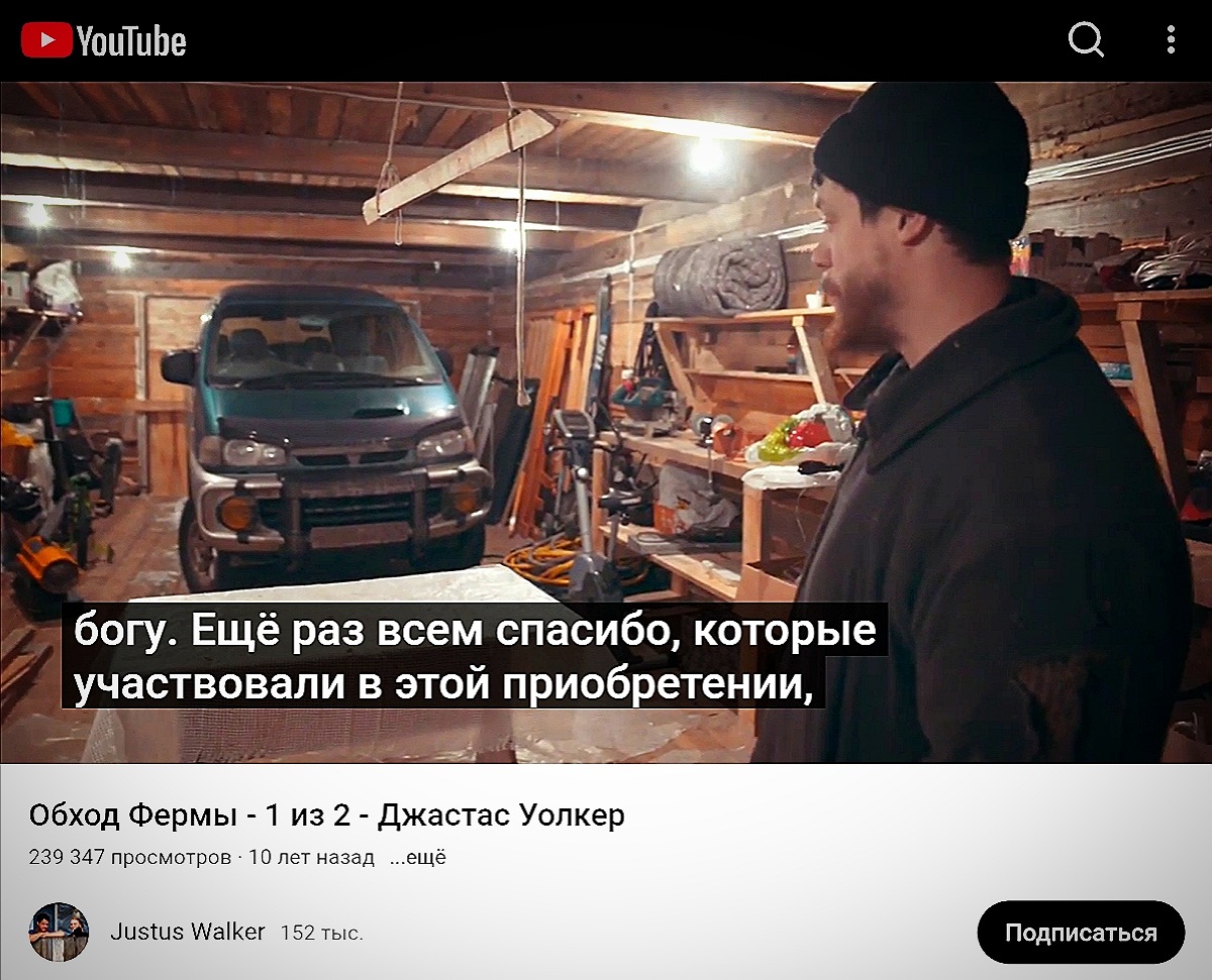 На скрине видеоролик "Как начать свою семейную ферму — Джастас Уолкер". На заставке видеоролика фото нескольких человек, вполне возможно, что некоторые из них, судя по их рабочей одежде — работники "Весёлого помещика"