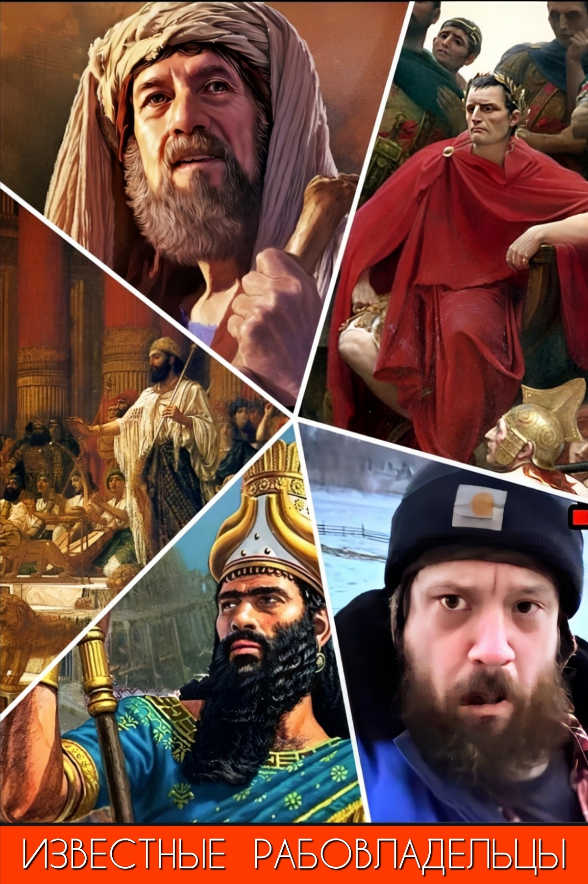 На картинке Авраам, Соломон, Навуходоносор, Юлий Цезарь, Джастас Уолкер. Подпись: "Известные рабовладельцы"