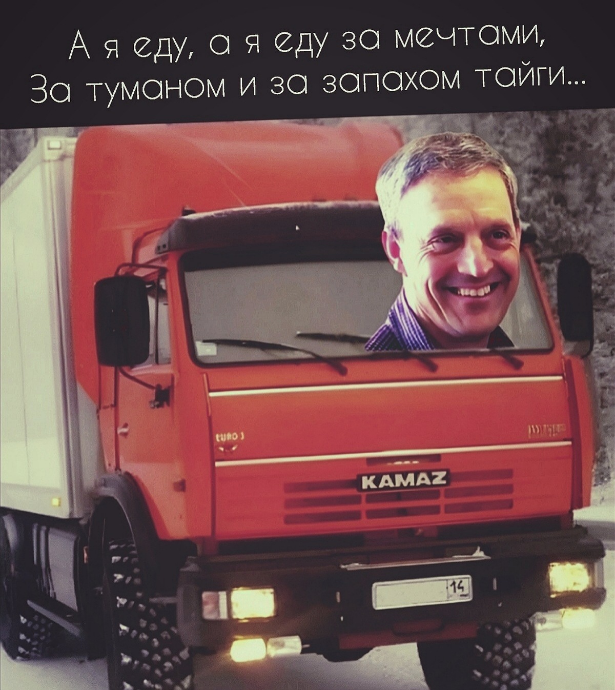 На картинке подпись: "А я еду, а я еду за мечтами, За туманом и за запахом тайги..."