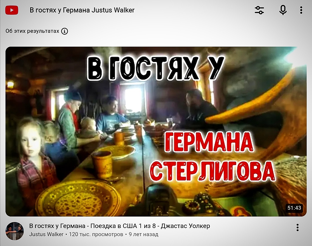 На скрине заставка видеоролика, в котором семья Джастаса посетила слободу Германа Стерлигова