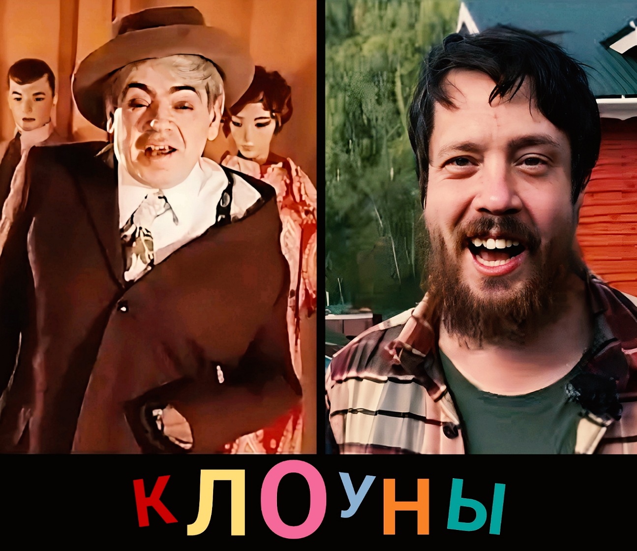 На картинке извесный советский юморист Аркадий Райкин и Джастас Уолкер. Подпись: "Клоуны"